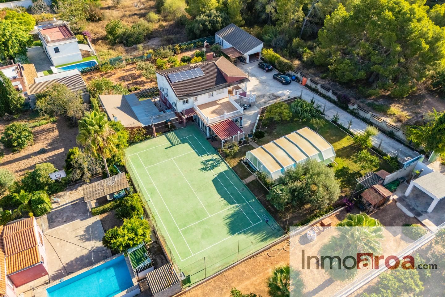 Osmosis, piscina con depuradora y techada para poder aprovecharla todo el año. Deposito de gasoil. Placas solares.