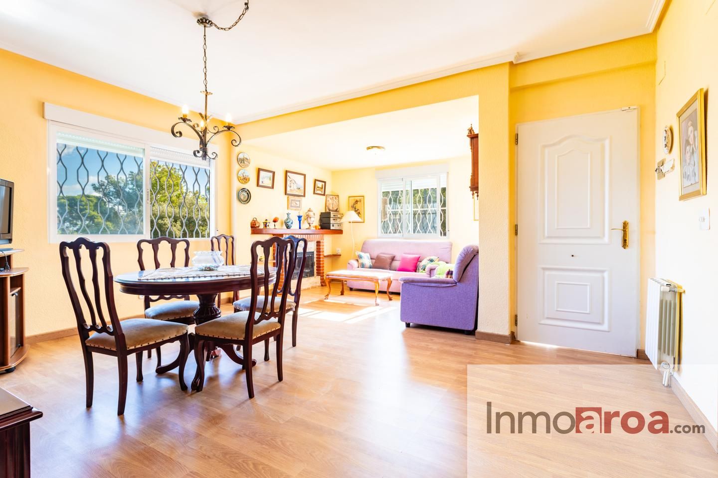 -Planta principal a pie de parcela, entrando por un porche acristalado, gran salón-comedor con una bonita cocina integrada, 2 dormitorios y 1 cuarto de baño completo con ducha. (Posibilidad de una tercera habitación).
