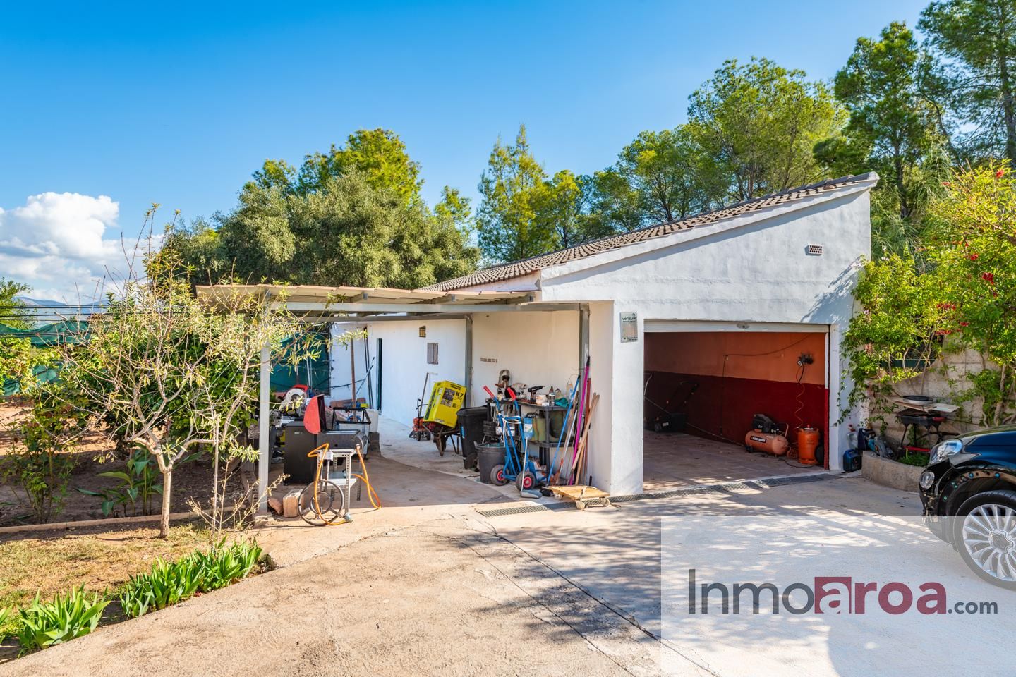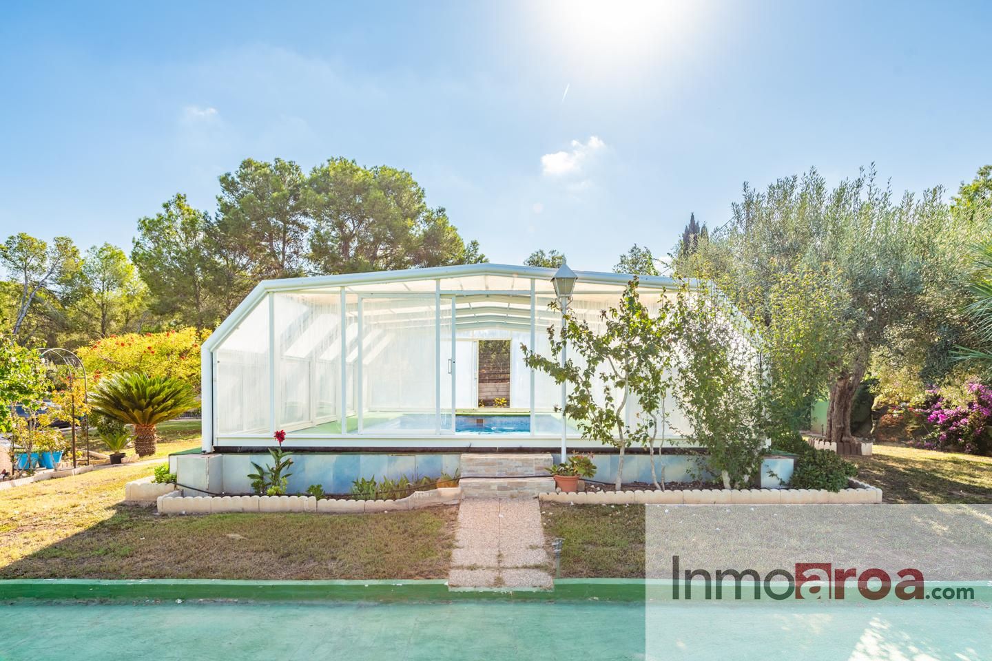 En el exterior, una bonita parcela rodea la vivienda con piscina, baño exterior, paellero, huerto y zona parking con capacidad para 3 vehículos y un garaje.