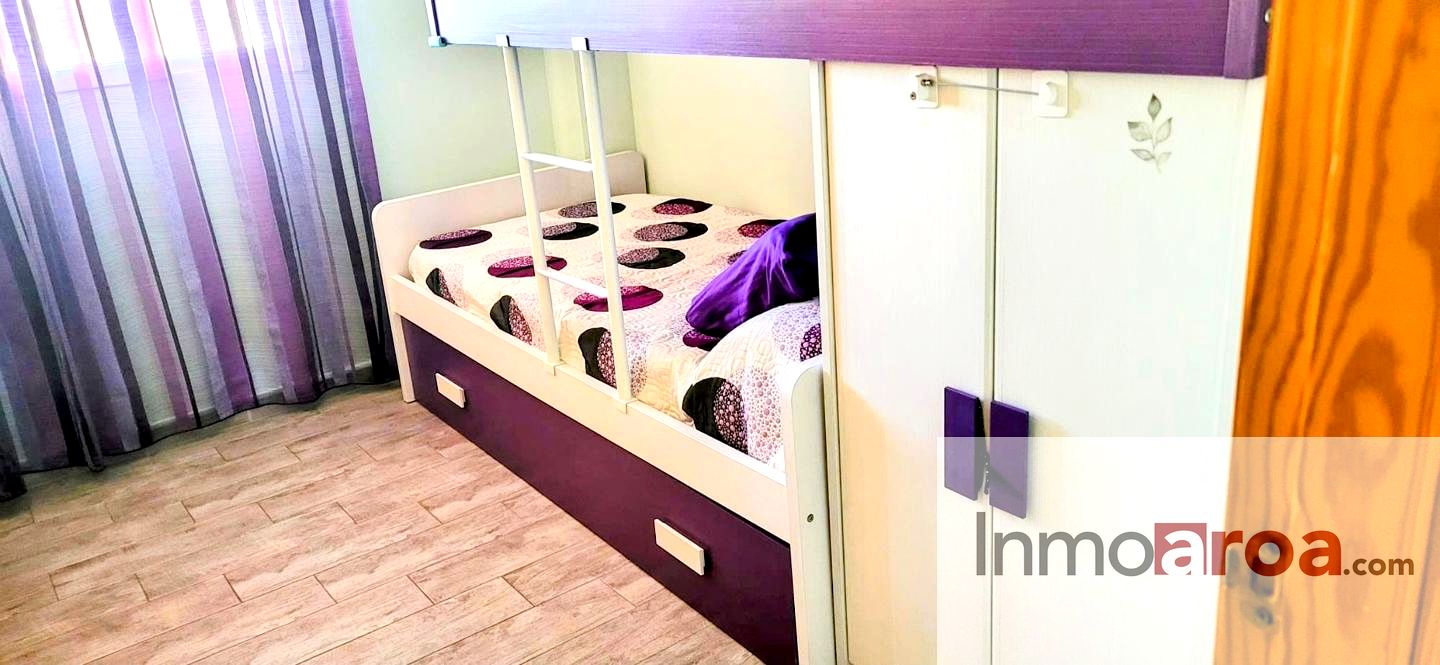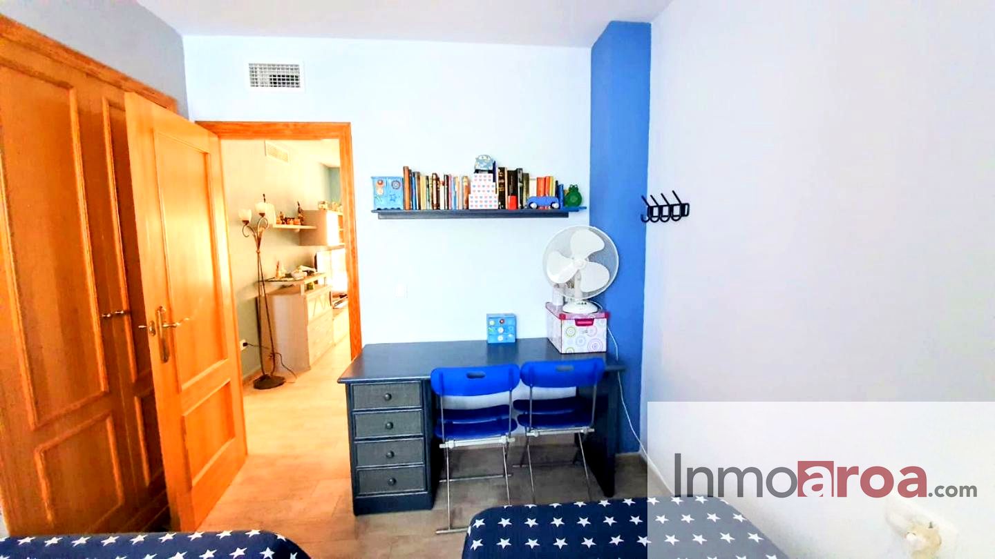 La vivienda se distribuye en un amplio salón/comedor con salida a terraza porchada y con toldos de unos 20m2 aprox. orientada a las zona peatonal, cocina office con galería/lavadero, 3 dormitorios con armarios empotrados y 2 baños (uno con ducha y otro con bañera en suite en el dormitorio principal, ambos con ventana).