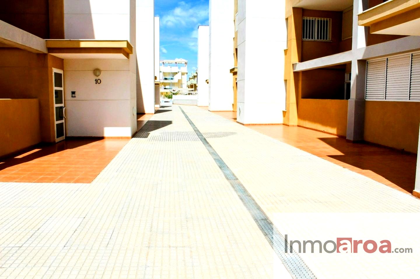 Dentro del complejo nos encontramos con una piscina comunitaria con zona de césped y unas 4 puertas de acceso al mismo.