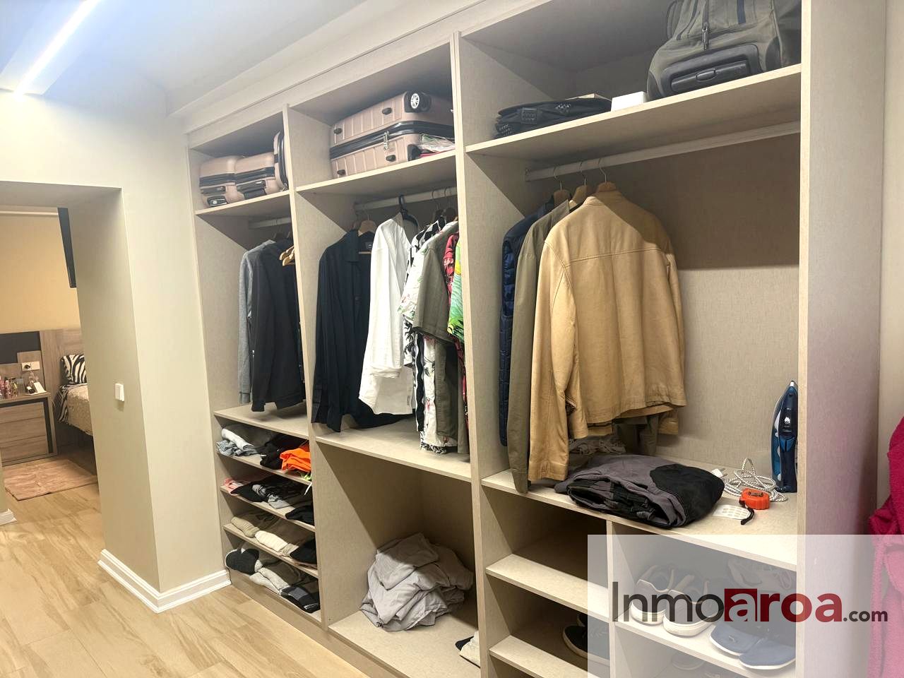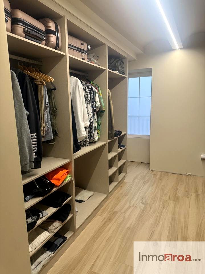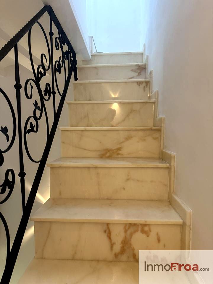 -Primera planta: subimos por la escalera de marmol con la barandilla en forja para acceder a la zona noche, en la cual, nos encontramos con tres dormitorios: dos de ellos juveniles uno con balcon y el otro con ventanal a patio interior, un baño completo con bañera, tercer dormitorio con baño completo de ducha en suit y gran vestidor, todos tienen aire acondicionado por split y armarios empotrados.