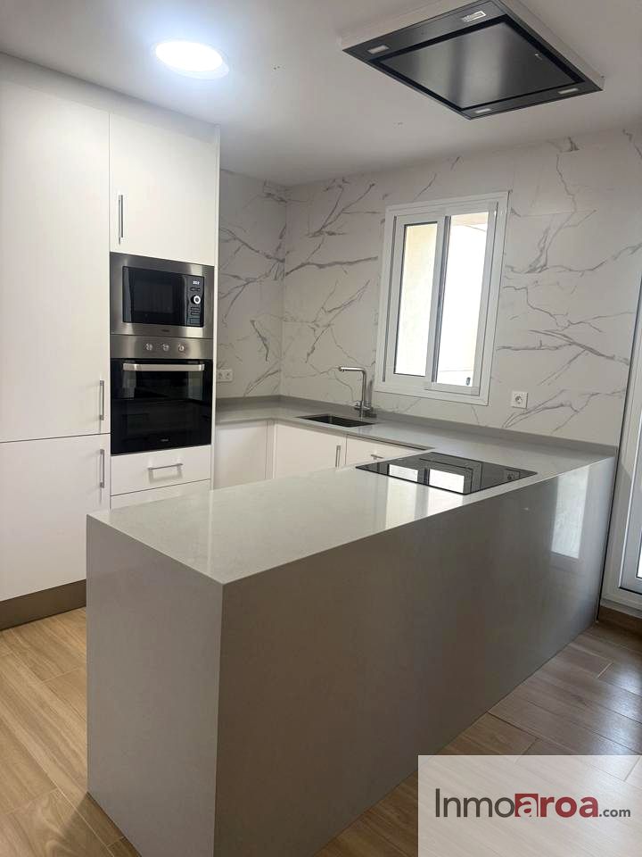 -Planta baja costa con recibidor y armario empotrado, salon comedor con cocina office, baño completo con ducha, dormitorio matrimonio..patio interior y garaje para coche pequeño. O tb se puede destinar a trastero o lavanderia. Suelo porcelanico de gran formato imitacion marmol y aire por conductos. Descalificador y equipo de osmosis.